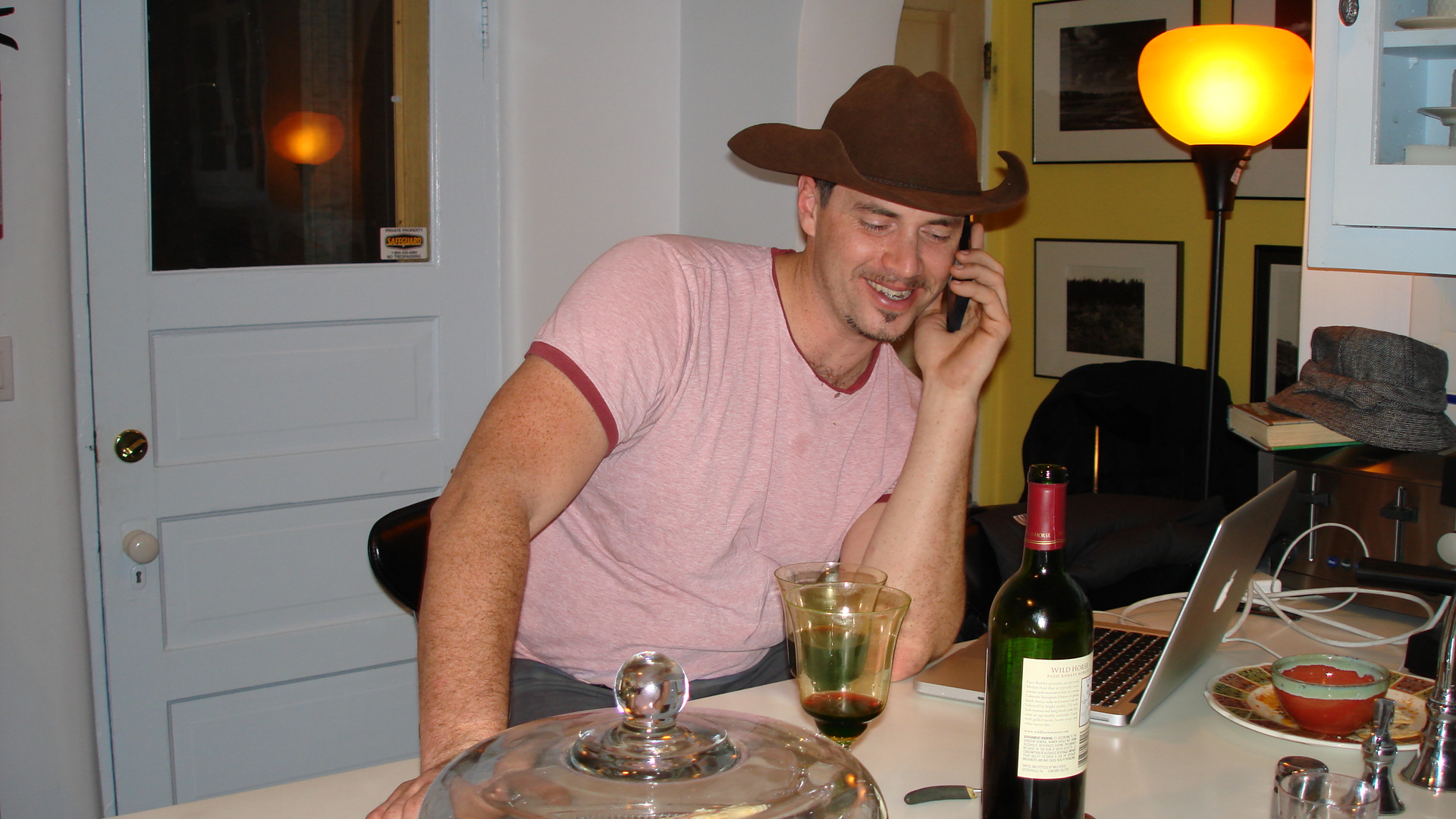 Lilith picked up the camera and started shooting a video. I put on a hat and sunglasses for the camera, and began using the pots as instruments. They frivolity reached a high note, just as the phone rang.