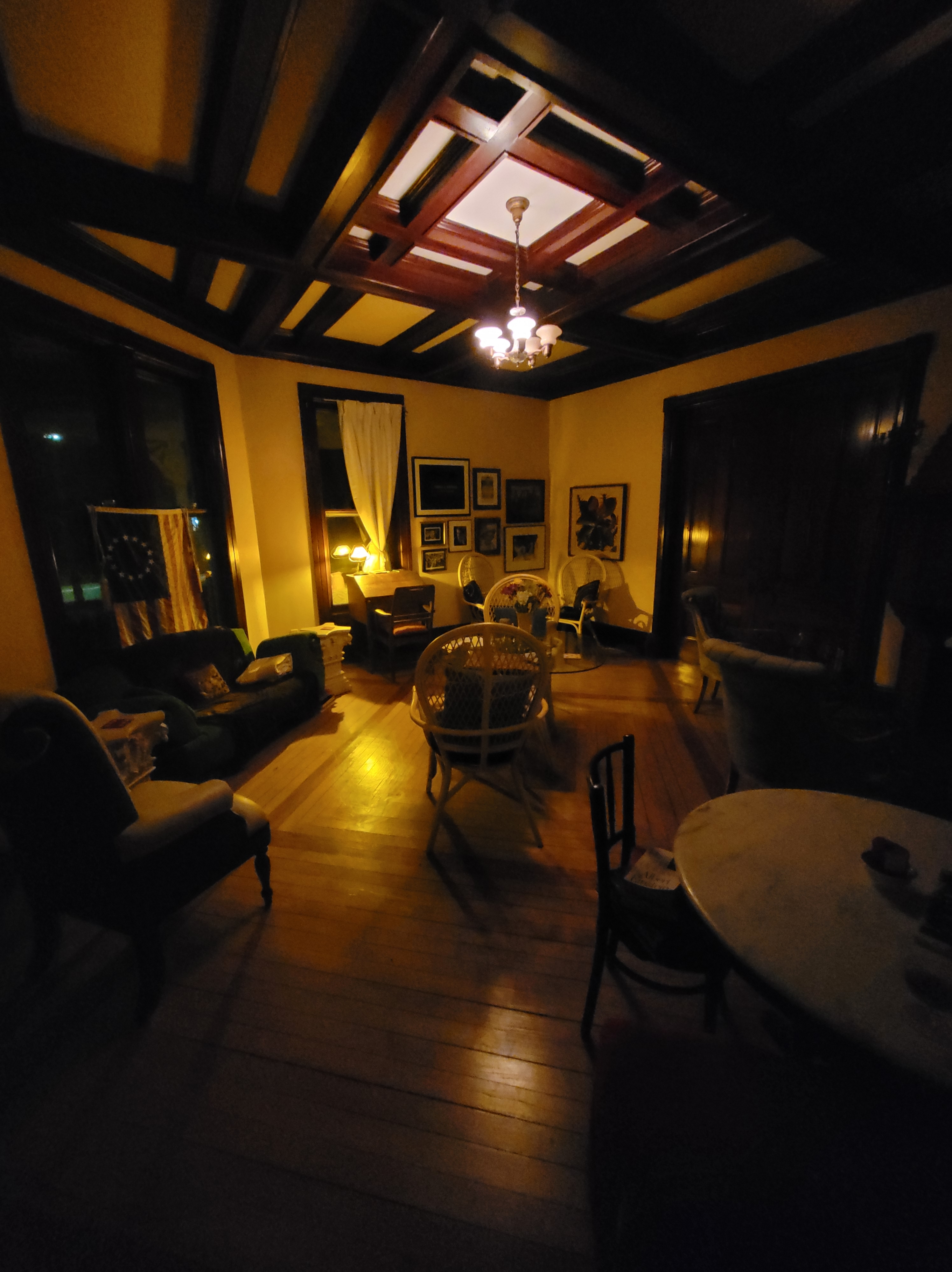 I return to the porch for one more gulp of landscape that I share with the stars. The street is unfamiliar, a temporary scene like a bus stop, and I am merely waiting to move on. Some of the neighbors are friendly, some have no interest, one kind of spies on me when he thinks I’m not looking. There’s a reason for that but it’s too much of a separate story right now.