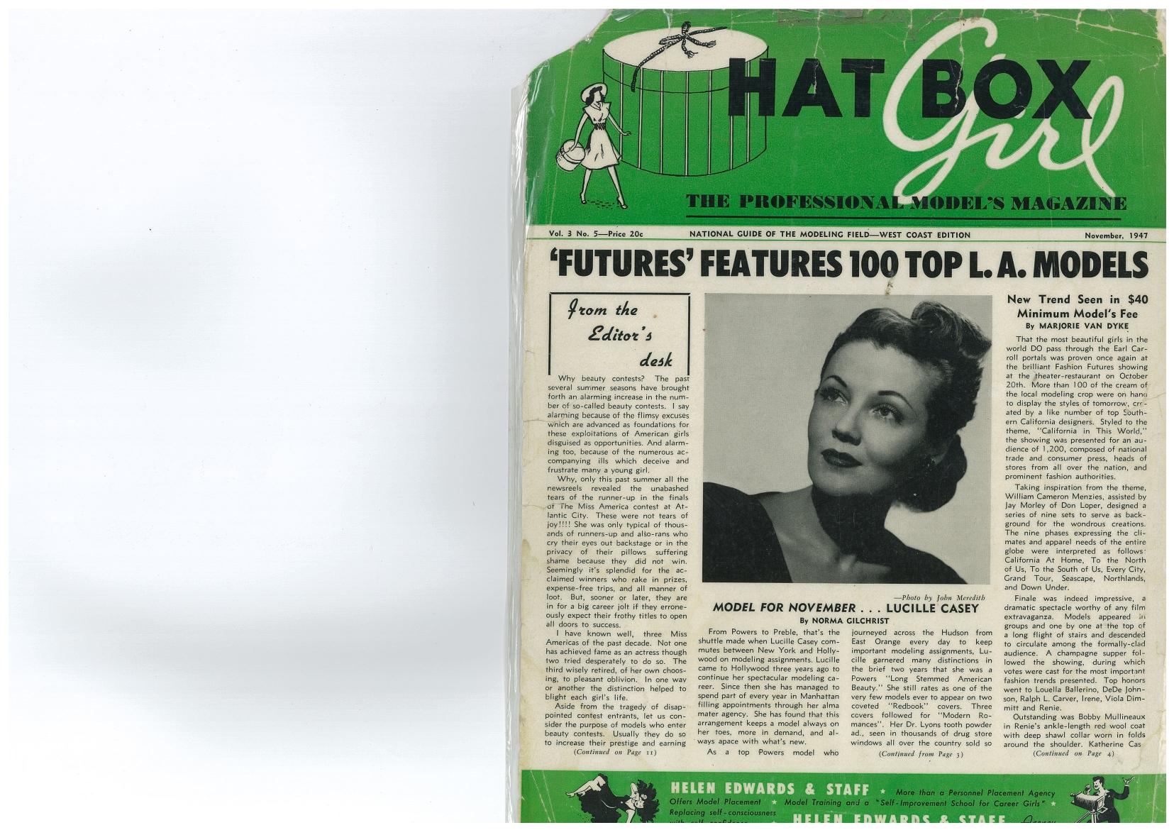John Robert Powers met Casey in his office on East 56th Street and signed her on as a Powers Girl. She was stunning to look at, she photographed like a movie star, and she was modest. John Powers did not look for aggressive, pouty-lipped, fearlessness. The Powers Girls were captioned, “Long Stemmed American Beauties” because they were wholesome, beautiful, tasteful, courteous, and virtuous. They were so far from the runway models of today, it is almost a reversal of the industry.