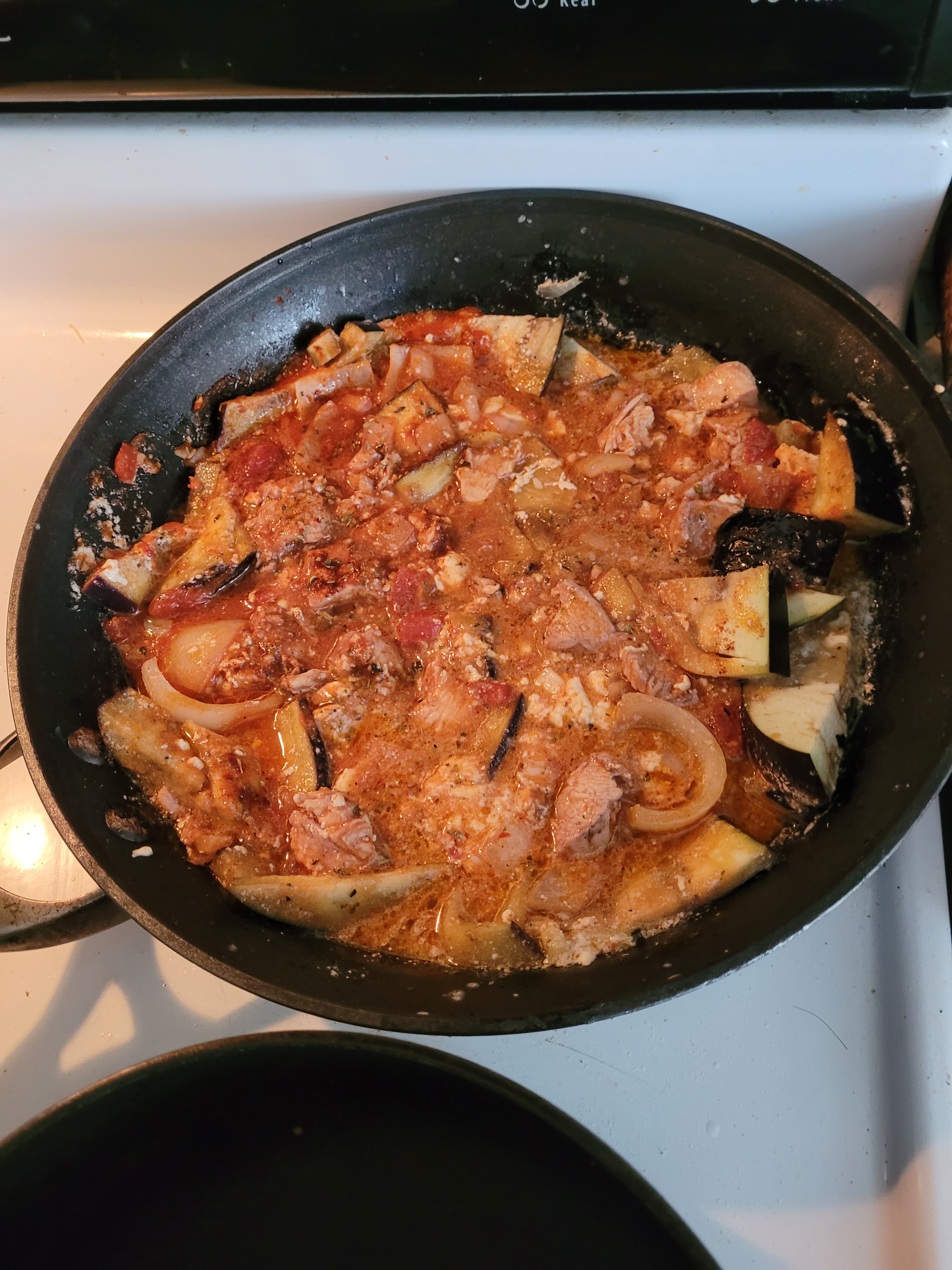 My car was stuck in the snow, and my eggplant pasta was stuck in cheese.